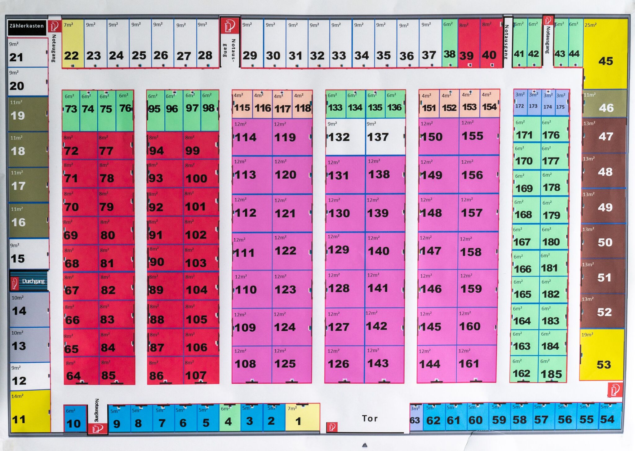 Bei Anmietung von Lagerboxen und Lagerräumen wird eine Monatsmiete als Kaution in bar und ein Personalausweis benötigt.
